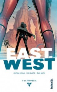 Avis : Urban développe sa collections indies cette semaine avec un des plus gros succès d’Image de l’année 2013 et dernier creator owned en date de Jonathan Hickman. Après avoir fait sa réputation chez Marvel, entre Secret Warriors et Fantastic Four, Hickman est revenu en parallèle au creator owned chez Image. Après Red Wing et parallèlement à Manhatthan Projects qui continue de diluer une dose de folie pure dans les comics, le scénariste prouve qu’il peut faire encore PLUS dingue avec East of West ! en fait cette série est tellement allumée, conceptuelle et azimutée qu’il est particulièrement difficile d’en expliquer le contenu. L’une des raisons est qu’Hickman construit son récit de manière assez disjointe. Il manie en parallèle tout un tas de pièces d’un récit qui ressemble à un puzzle géant, en ne faisant des liens que de manière partielle.