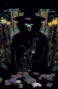 Sollicitation : In the aftermath of « The Joker War, » Selina Kyle has taken up residence in Alleytown. But when she finds that her old stomping grounds have been taken over by drug-running mobsters, she hatches a plan to take the town back! However, unbeknownst to her, she is being tracked by a terrifying new foe: a hit man in priest’s clothing known only as Father Valley, who carries a bag of bibles around as trophies from each of his victims. Will she be able to loosen the mafia’s stranglehold on her new hometown or become another victim to Father Valley’s sacred oath?