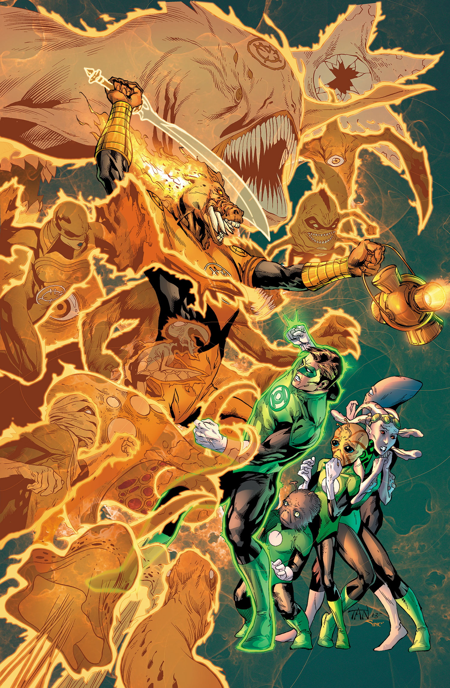 Sollicitation : Larfleeze arrives on Oa to find the Corps at their most desperate, while Hal is forced to throw new Green Lantern recruits into a battle they might not win! And don’t miss the birth of a brand new threat.